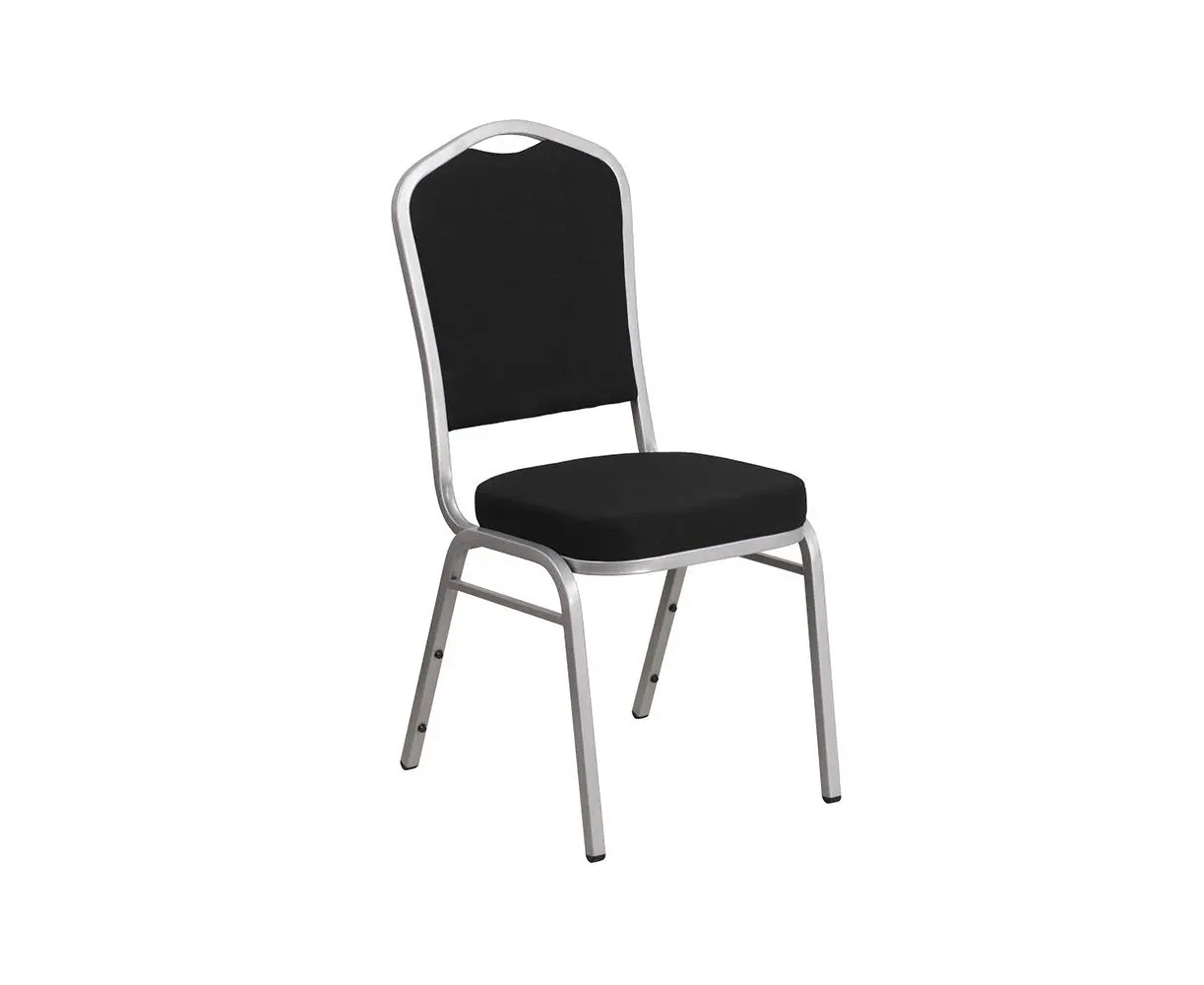 ელეგანტური და თანამედროვე სკამი, შავი ქსოვილის სავარძლითა და საზურგით, გამოირჩევა მრუდი საზურგით, რომელიც უზრუნველყოფს დამატებით კომფორტსა და მხარდაჭერას. ლითონის ჩარჩო მტკიცე და გამძლეა, რაც იდეალურია კომერციული გამოყენებისთვის.