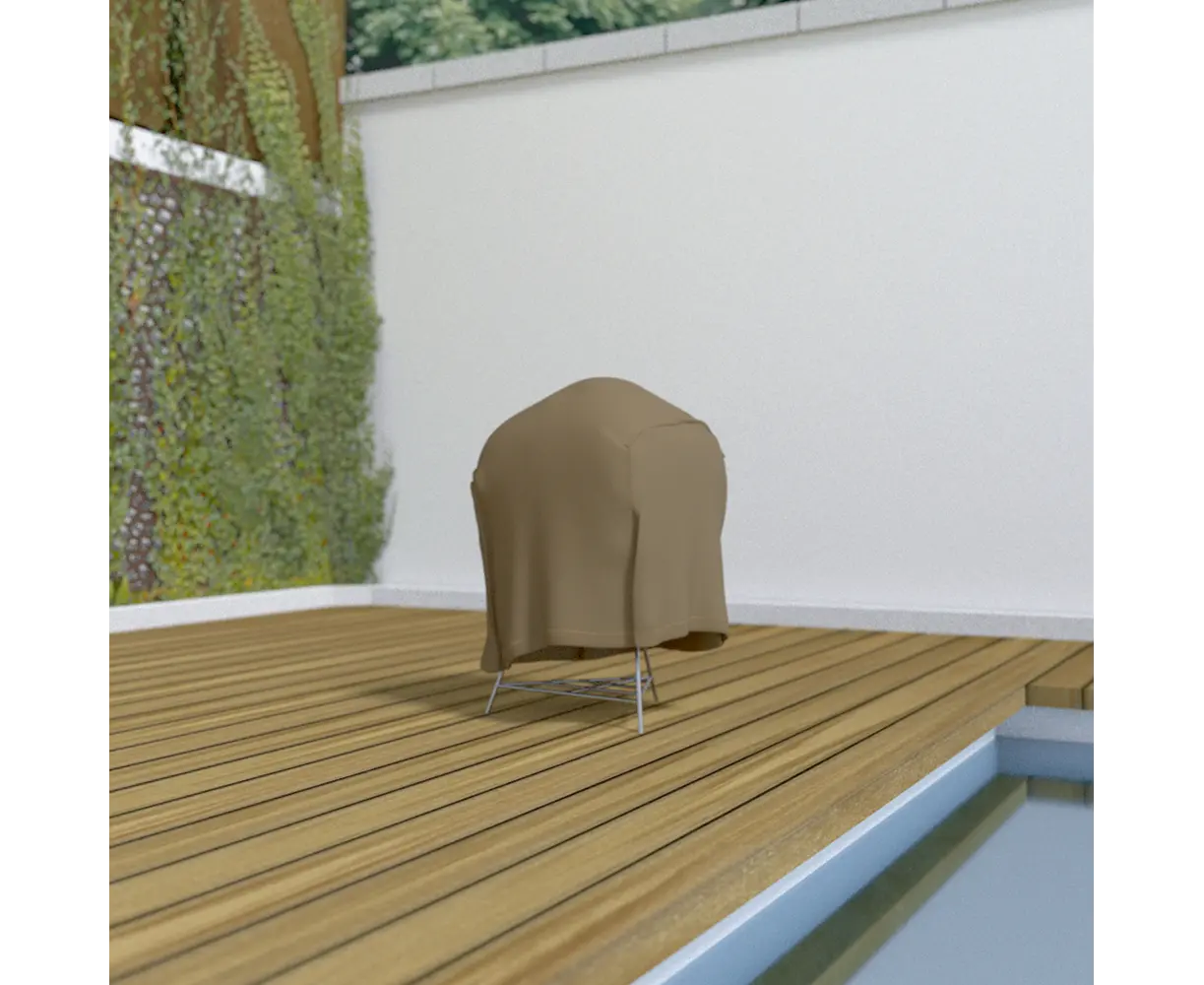 ბარბექიუს დამცავი საფარი იდეალური საშუალებაა თქვენი გრილის დასაცავად წვიმისგან, მზის სხივებისგან და მტვრისგან. დამზადებულია მაღალი ხარისხის პოლიურეთანით დაფარული პოლიესტერისგან, რომელიც უზრუნველყოფს წყალგაუმტარობასა და ულტრაიისფერი სხივებისგან დაცვას. მისი რუხი-ყავისფერი ფერი ავეჯსა და გარემოს ელეგანტურ იერს სძენს და ბუნებრივად ერწყმის გარე ინტერიერს. ეს საფარი დაგეხმარებათ შეინარჩუნოთ თქვენი ბარბექიუ სუფთად და გახანგრძლივოთ მისი ექსპლუატაციის ვადა.