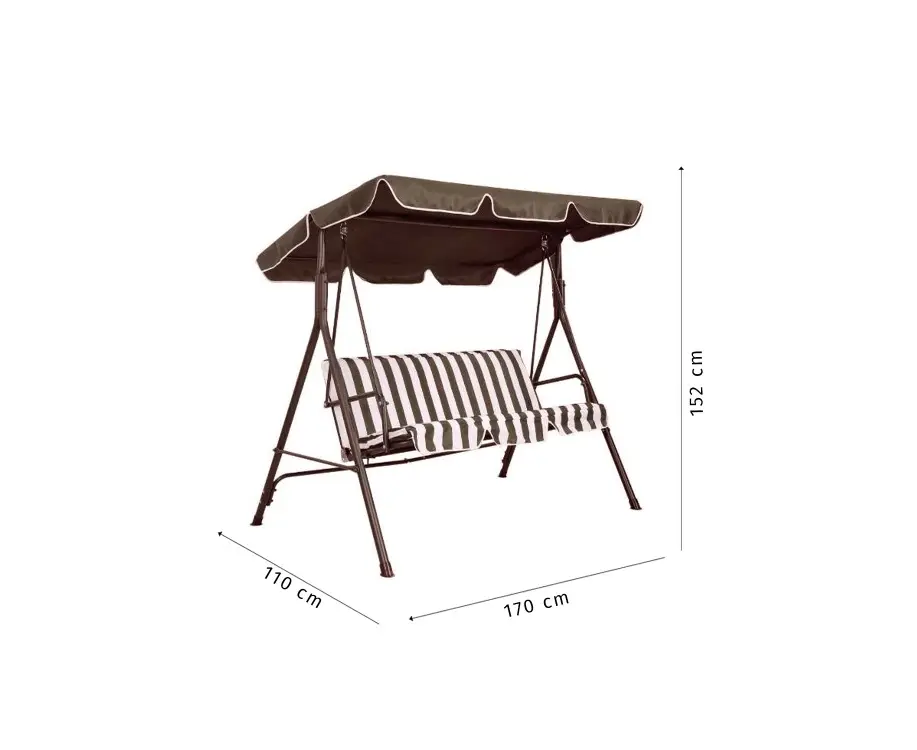 სამადგილიანი ბაღის საქანელა შესანიშნავი არჩევანია ბუნებაში, აივანზე, ბაღში, ტერასაზე ან აგარაკზე დასვენებისთვის. მარტივი აწყობა და დაშლა მდგრადობისა და სტაბილურობის შენარჩუნებით მოდელის ერთ-ერთი მთავარი უპირატესობაა. ლითონის ელემენტები დაფარულია ფხვნილოვანი საღებავით, რაც ანტიკოროზიულ მახასიათებლებს და ესთეტიურობას უზრუნველყოფს.
