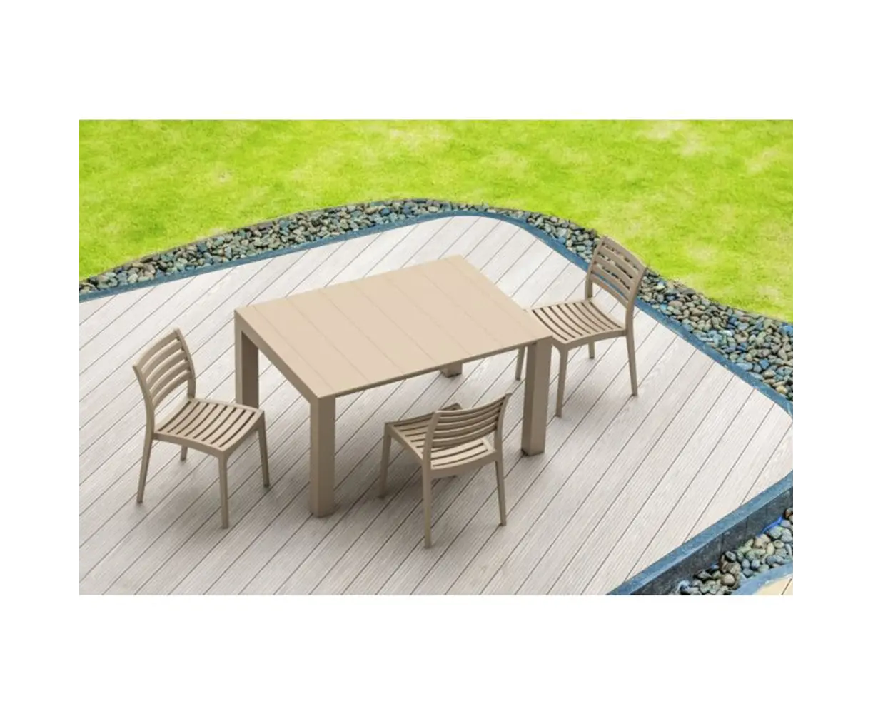 Vegas სასადილო მაგიდა, ფისოვანი ზედაპირით, უახლესი თერმოპლასტიკური ფეხებით. განკუთვნილია როგორც შიდა, ასევე გარე გამოყენებისთვის. აქვს დახვეწილი დიზაინი, რომელიც მდგრადია ულტრაიისფერი სხივების მიმართ.