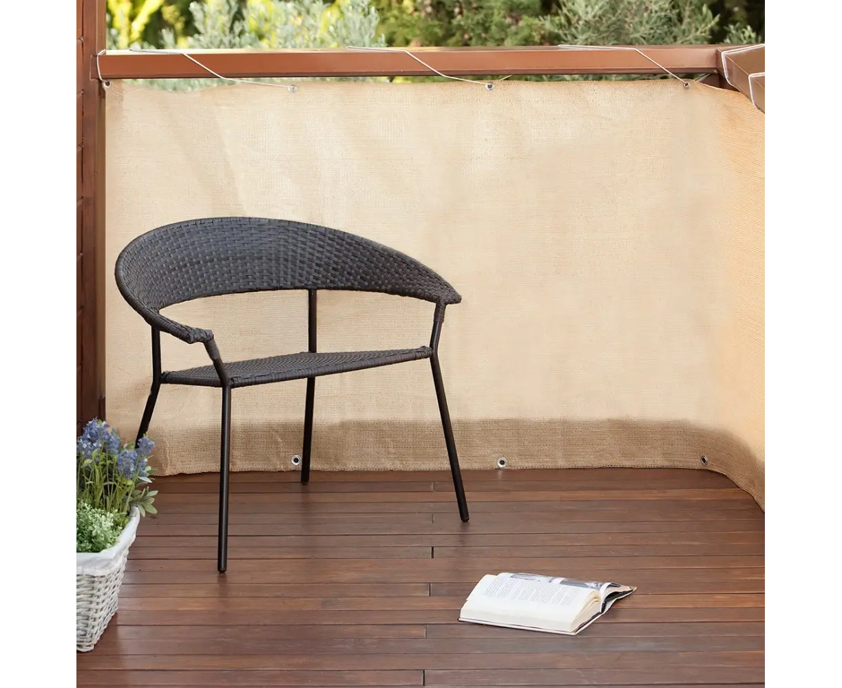 პრაქტიკული და ესთეტიკური გადაწყვეტილება თქვენი აივნისა და ტერასის მოსაწყობად. დამზადებულია PVC-ით დაფარული პოლიესტერის ბოჭკოსგან, რაც უზრუნველყოფს გამძლეობას, წყალგამძლეობას და UV დაცვას. მასზე განთავსებული 10 მმ ალუმინის სამაგრი რგოლები ამარტივებს მონტაჟს და ზრდის მის საიმედოობას.