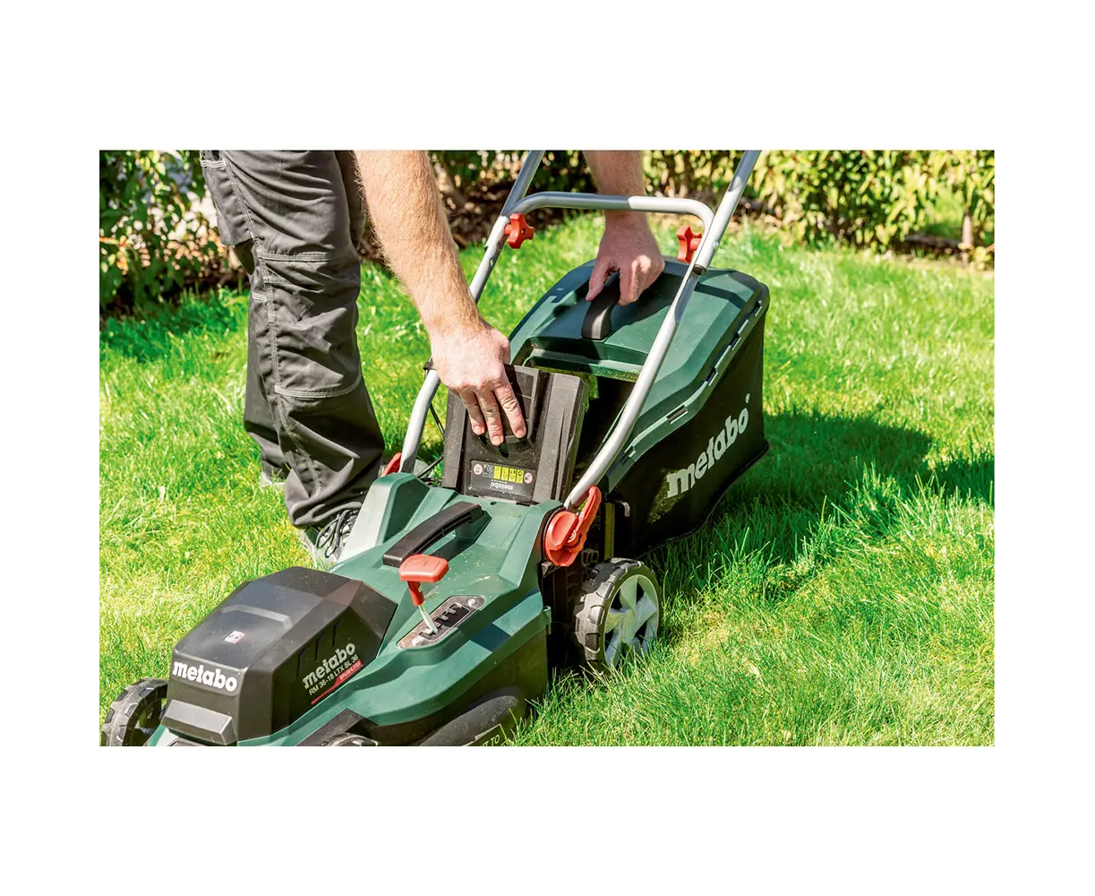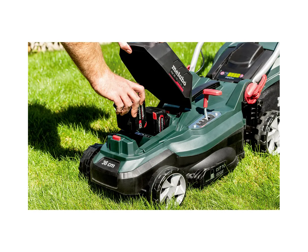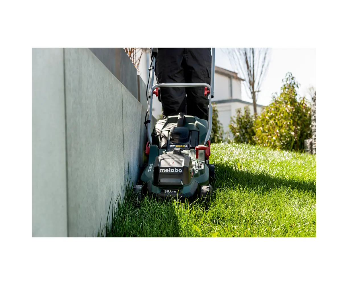აკუმულატორული გაზონმოჭრელი Metabo RM 36-18 LTX BL მუშაობს 18 V-ზე და აღწევს 4000 ბ/წთ-მდე სიჩქარეს. ჭრის სიგანე — 360 მმ, რეგულირებადი ჭრის სიმაღლე — 20–70 მმ. მოჰყვება 2 x 5.2 Ah ბატარეა. ხმის დონე — 90 dB(A). ბალახის კონტეინერი — 45 ლ. ფერი — მწვანე.