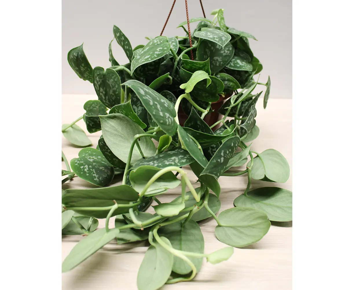 Scindapsus pictus არის ტროპიკული მცენარე, რომელსაც ახასიათებს ელეგანტური, გულის ფორმის მწვანე ფოთლები ვერცხლისფერი ლაქებით. ჩამოსაკიდი ქოთანში ის წარმოუდგენლად შთამბეჭდავად გამოიყურება – ლამაზად ეშვება ქოთნიდან, რაც იდეალურს ხდის ინტერიერის დეკორისთვის. მისი მოვლა მარტივია, რაც სკინდაფსუსს ერთ-ერთ ყველაზე პოპულარულ ოთახის მცენარედ აქცევს.