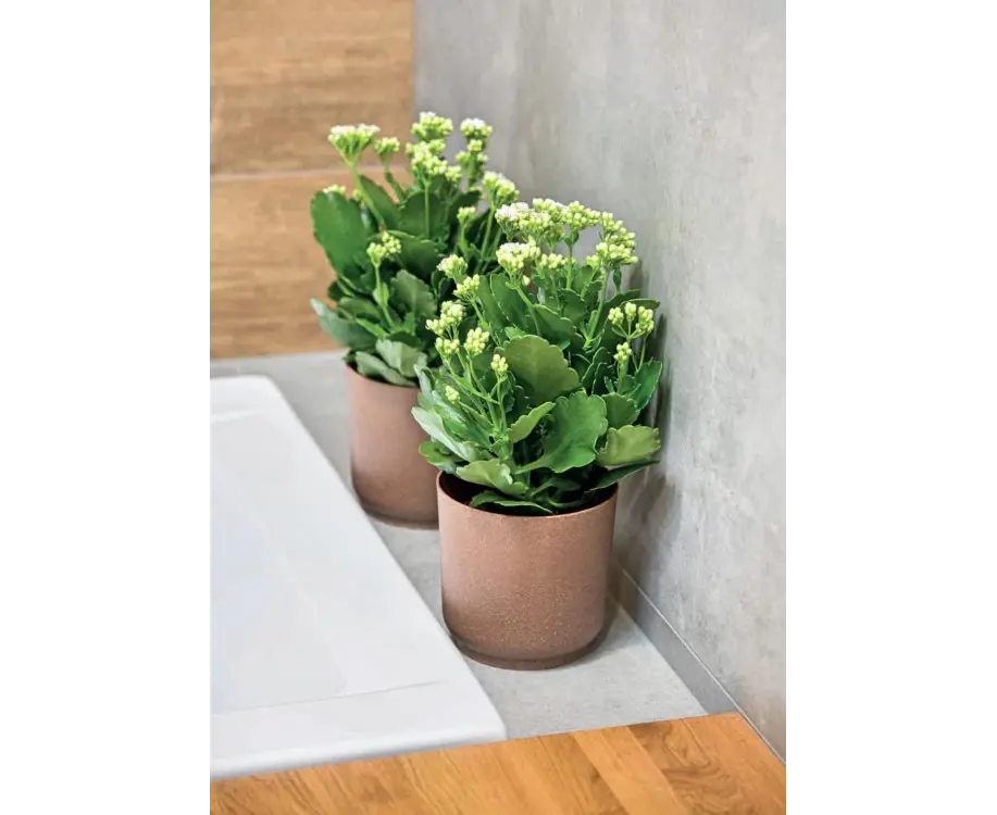 ეკო ყვავილების ქოთნები დამზადებულია უმაღლესი ხარისხის მასალისგან უახლესი ტექნოლოგიების გამოყენებით, რომელიც არ დააზარალებს გარემოს, მათ შორის მცენარეს, კომპოზიციაში გამოყენებულია გადამუშავებული პლასტმასი და 35%-იანი ხის ჩიპები. მდგრადი მასალის წყალობით ეს სარგავი დიდხანს გაძლებს.