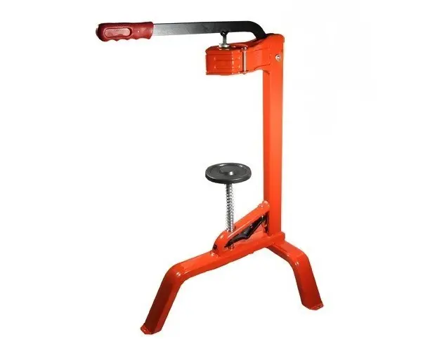 სტაციონარული მოწყობილობა ღვინის ბოთლების დასალუქად ნატურალური და სინთეზური საცობით.
