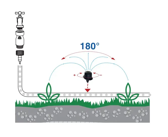 • წვეთების ნაკადის და მორწყვის დიამეტრის რეგულირება