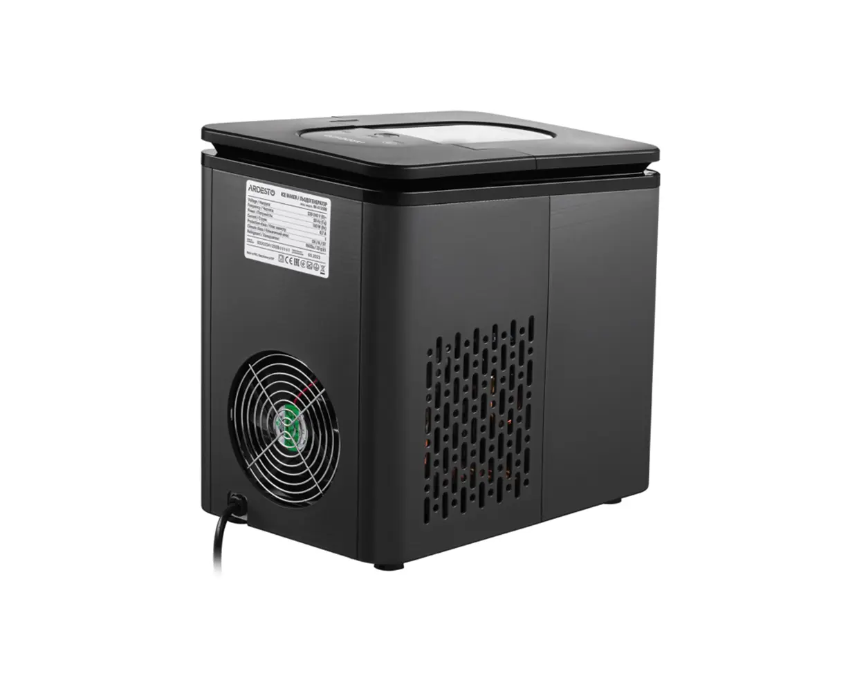 Ardesto IM-A1200B პორტატული ყინულის აპარატი არის იდეალური მოწყობილობა კოქტეილების, სლაშების და სხვადასხვა დესერტების მოსამზადებლად. იგი მხოლოდ 9 წუთში ამზადებს ყინულს და დღეში შეუძლია დაახლოებით 12 კგ-ის წარმოება. მოწყობილობა აღჭურვილია თვითწმენდის ფუნქციით, რაც მის გამოყენებას კიდევ უფრო კომფორტულს ხდის. დახვეწილი დიზაინი და სენსორული ღილაკები უზრუნველყოფს თანამედროვე იერს და მარტივ მართვას.