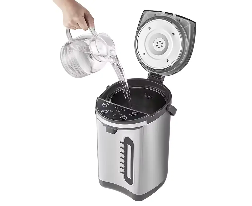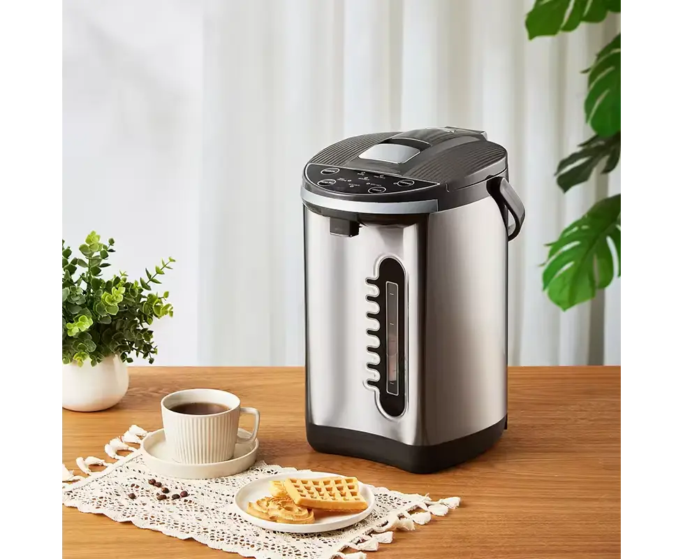 თერმო ჩაიდანი სწრაფად და მარტივად ადუღებს 6 ლიტრამდე წყალს. კორპუსზე არსებული LED ეკრანის საშუალებით მარტივად შეძლებთ ტემპერატურის რეგულირებას. სითბოს შენარჩუნების რეჟიმი უზრუნველყოფს ცხელ წყალს მთელი დღის განმავლობაში. ჩაიდნის უსაფრთხოდ გამოსაყენებლად აქვს გადახურებისგან დაცვის ფუნქცია უწყლოდ ჩართვის შემთვევაში. აქვს უჟანგავი ფოლადის შიდა საფარი, დახვეწილი და ელეგანტური დიზაინი და 360°-ით ბრუნვის შესაძლებლობა . მოწყობილობა პრაქტიკული გამოსაყენებელი და მარტივად გასაწმენდია.