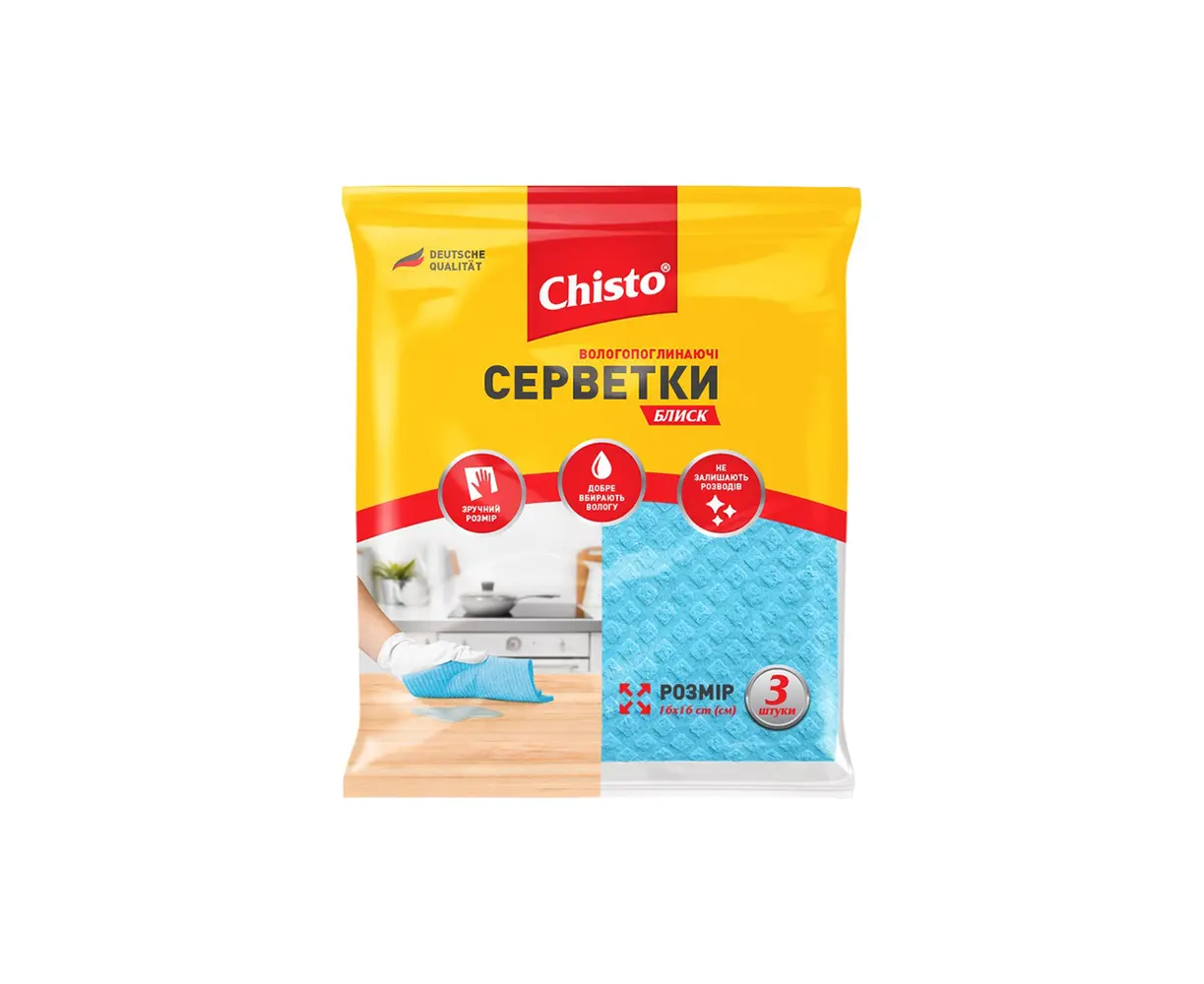 Chisto SHINE-ის მაგიდის ტილო (3 ცალი) გამძლე და შთამნთქმელია, იდეალური ყოველდღიური გასაწმენდი და სუფთა ზედაპირის შესანარჩუნებლად.