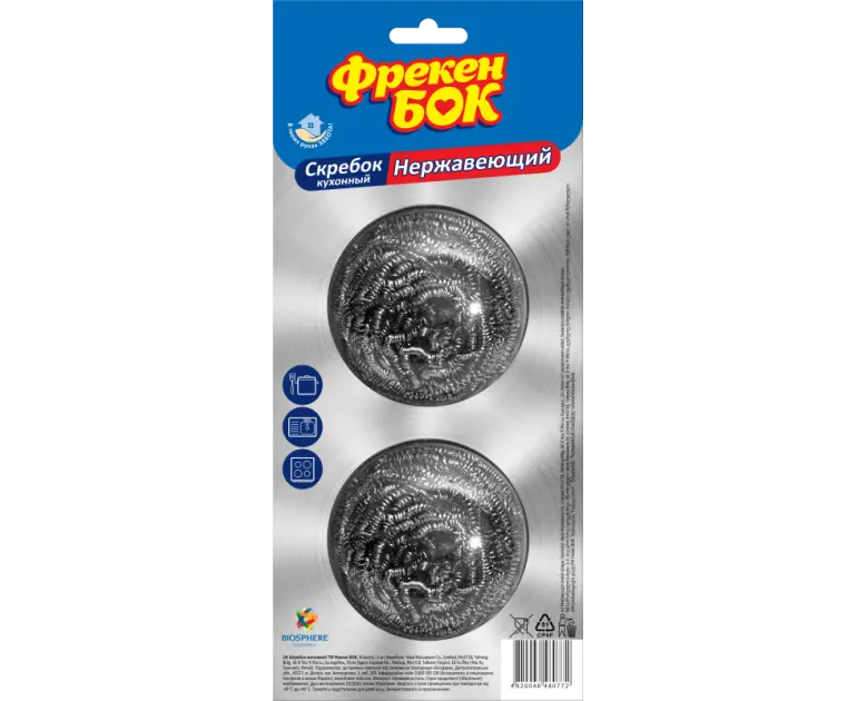 Freken Bok სავაჭრო ნიშნის საფხეკი განკუთვნილია ძლიერ დაბინძურებული ზედაპირების გასაწმენდად. დამზადებულია მაღალი ხარისხის ფოლადისაგან. შეიძლება გამოყენებულ იქნას ქვაბებზე, ტაფაზე, ნიჟარაზე და გაზქურაზე.