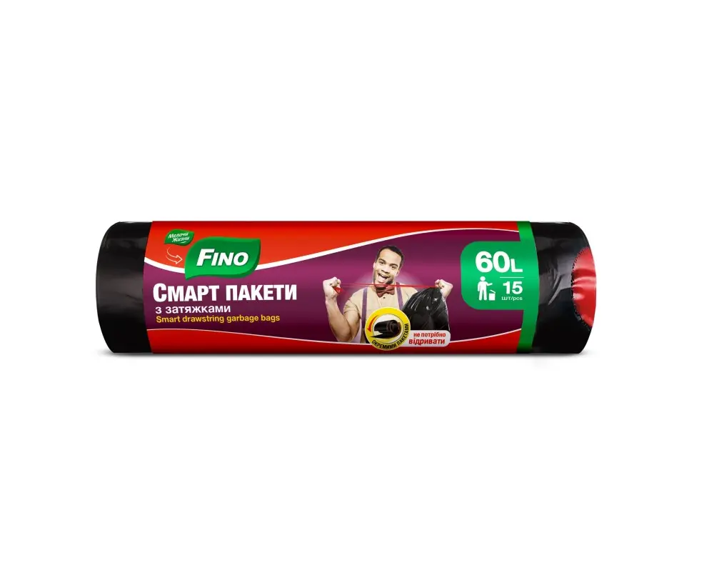პაკეტი ნაგვის შესაკრავით Fino 60ლ./15ც.