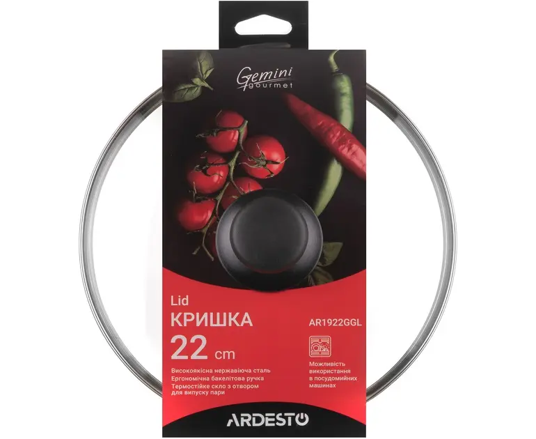 მინის თავსახური სახელურით Ardesto 22 სმ