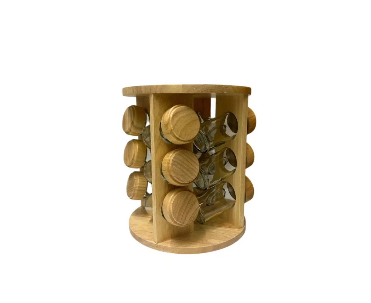 ამ სადგამის ბუნებრივი ფერი და დახვეწილი სტილი იდეალურად ერგება ნებისმიერი სამზარეულოს ინტერიერს.მისი პრაქტიკული დიზაინი საშუალებას გაძლევთ სანელებლები მოწესრიგებულად და კომფორტულად მოათავსოთ. ხის სტენდი სიმყარესა და სტაბილურობას უზრუნველყოფს, ხოლო გამჭვირვალე ქილები კომფორტულ გამოყენებას. ნაკრებში შედის 6 ცალი სანელებლების ქილა.