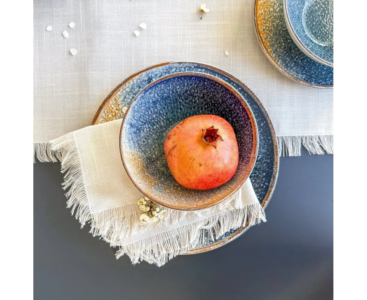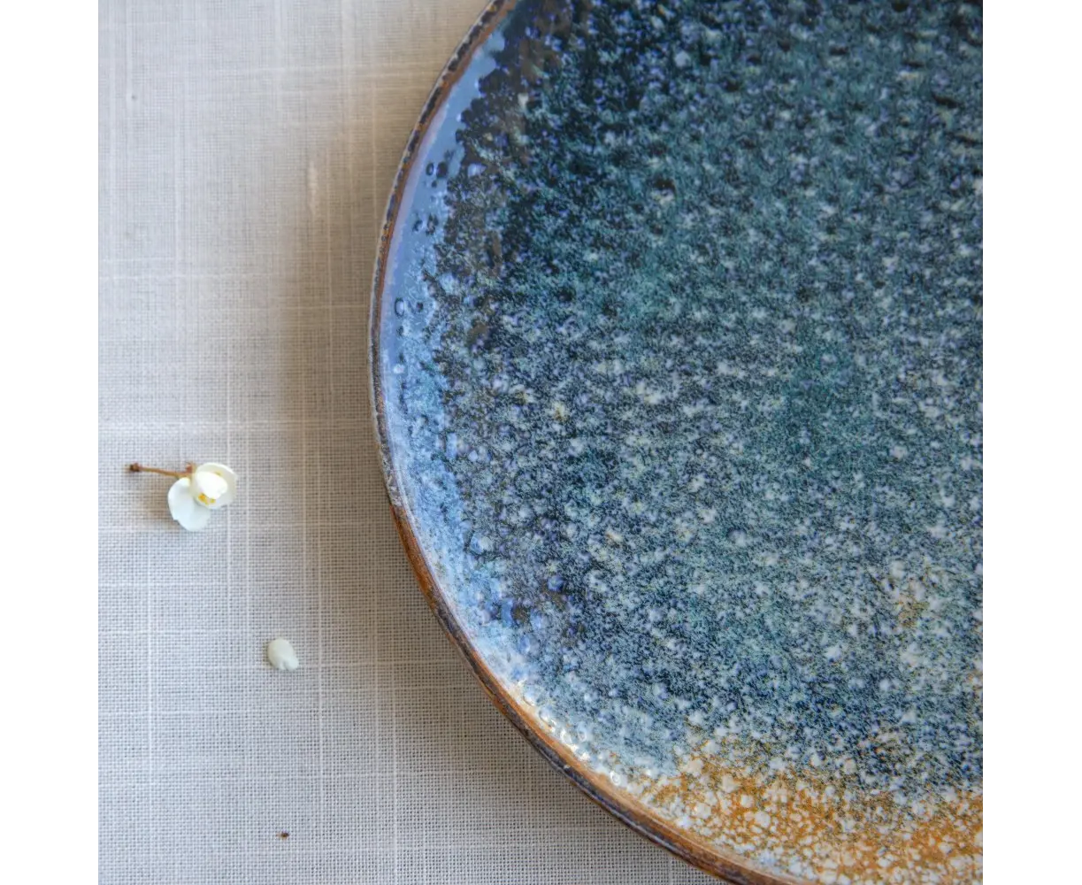 თეფშის ბუნებრივი ტონებით შთაგონებული მინანქარი და ლურჯ-ბეჟი გრადაცია თითოეულ თეფშს უნიკალურ იერს აძლევს.თეფში იდეალურია დესერტების, ხილისა და მცირე წასახემსებლებისათვის. მისი გამოყენება შესაძლებელია როგორც მიკროტალღურ ღუმელში, ისე ჭურჭლის სარეცხ მანქანაში, რაც დამატებით კომფორტს უზრუნველყოფს ყოველდღიურ გამოყენებაში.