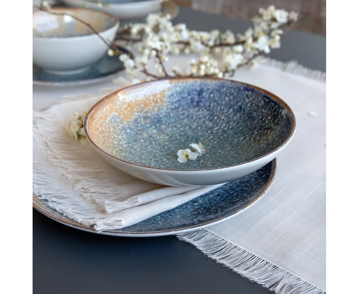 თეფშის ბუნებრივი ტონებით შთაგონებული მინანქარი და ლურჯ-ბეჟი გრადაცია თითოეულ თეფშს უნიკალურ იერს აძლევს.თეფში იდეალურია სუპის, სალათისა და პასტის მისართმევად. მისი გამოყენება შესაძლებელია როგორც მიკროტალღურ ღუმელში, ისე ჭურჭლის სარეცხ მანქანაში, რაც დამატებით კომფორტს უზრუნველყოფს ყოველდღიურ გამოყენებაში.