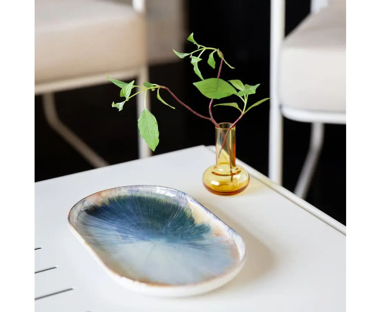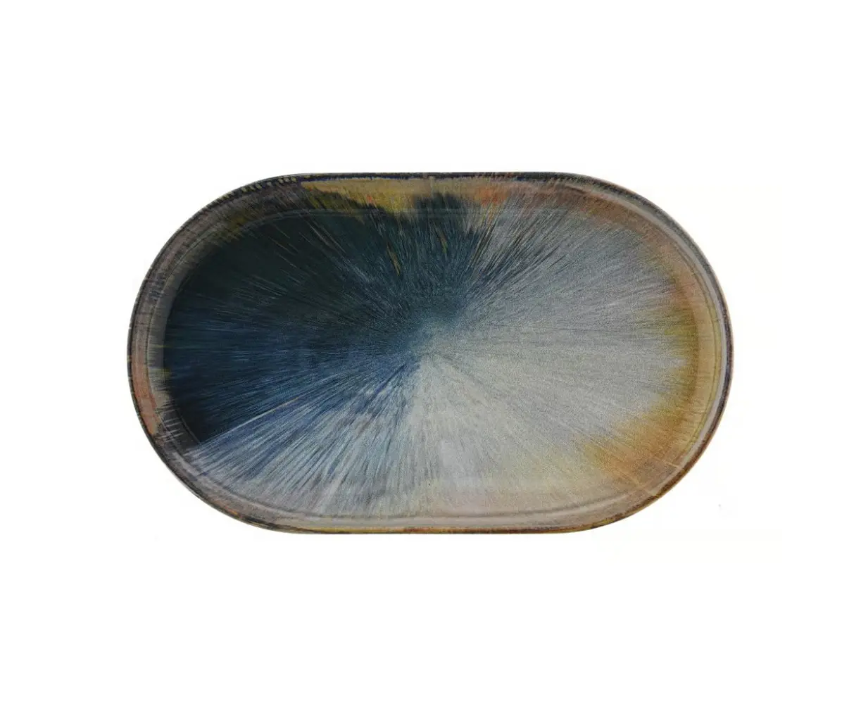 Ambition Madera-ს სერვირების თეფში ზომით 25×15 სმ, არის პრაქტიკული დიზაინისა და მხატვრული ნიჭის მშვენიერი შერწყმა. მისი ინტერიერი გამოირჩევა ნაზი, ხელით მოხატული დიზაინით რბილ ცისფერ და კრემისფერ ტონებში. ზედაპირი გლუვი და ერთგვაროვანია, რაც მას მარადიულ და ელეგანტურ იერს ანიჭებს.
