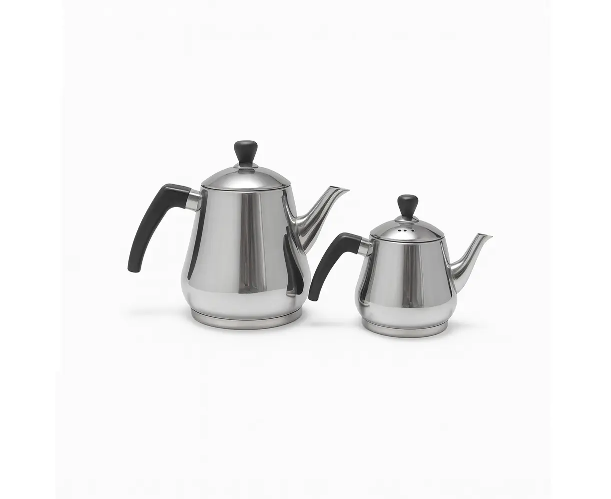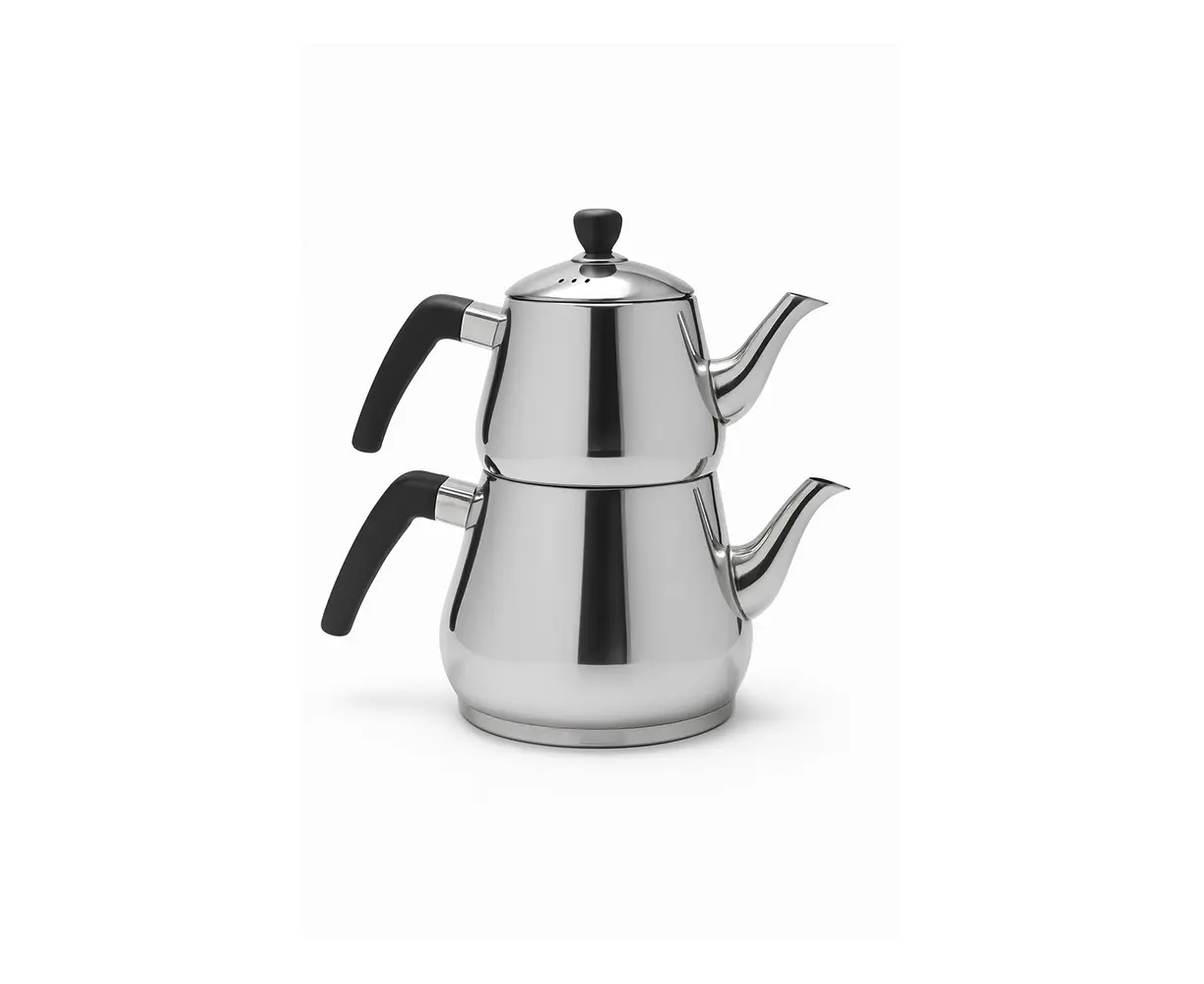 ორსართულიანი ჩაიდანი იდეალურია თურქული ჩაის ტრადიციული მომზადებისთვის. დამზადებულია მაღალი ხარისხის უჟანგავი ფოლადისგან, რომელიც გამძლეა და მარტივად იწმინდება. კომფორტული თერმორეზისტენტული სახელურები არ ცხელდება გამოყენებისას, ხოლო ელეგანტური პრიალა ზედაპირი მისცემს სუფრას დახვეწილ იერს.