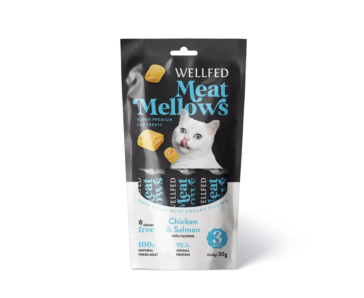 კატის სასუსნავი Wellfed 30გრ ქათამი და ორაგული