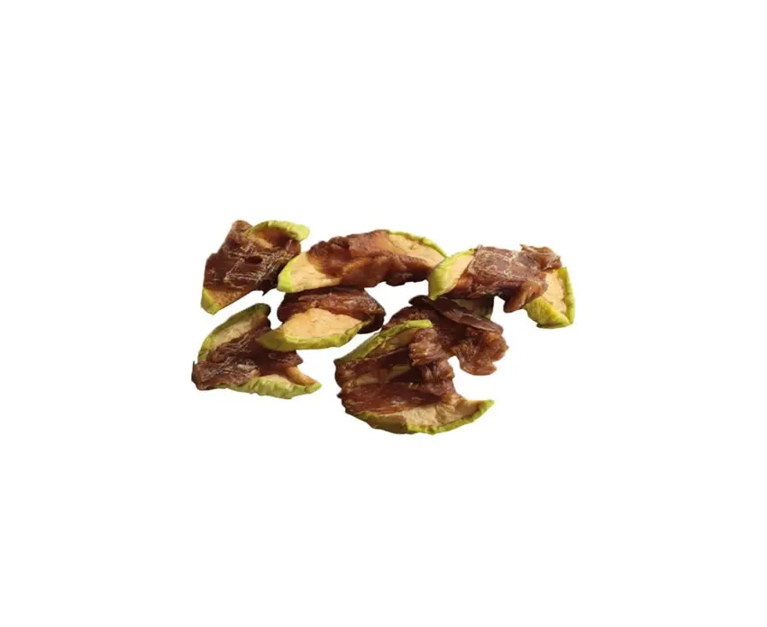 სავარჯიშო სასუსნავი ხორცით, C ვიტამინით და დიეტური ბოჭკოებით. შეიცავს 50% ვაშლს, 49.8% ქათმის ფილეს.