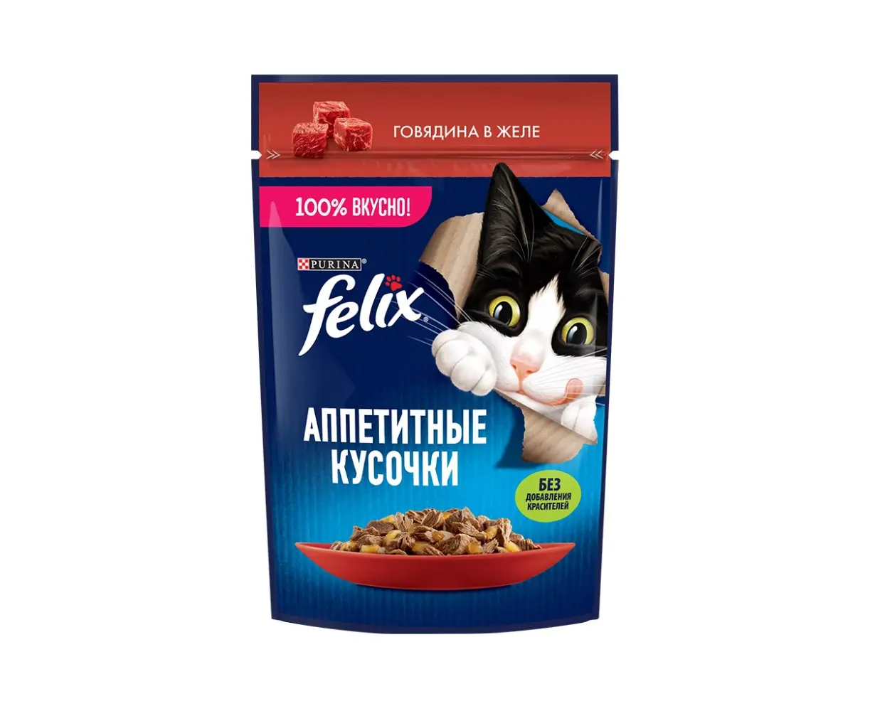სპეციალური საკვები მადისაღმძვრელი ვიზუალით და არომატით. ზრდასრული კატის საკვების "მადისაღმძვრელი ნაჭრები"-ს თითოეული ულუფა შეიცავს ხორცის ნაზ ნაჭრებს წვნიან ჟელეში. ექსპერტებმა, რომლებიც ქმნიან სველ საკვებს შინაური ცხოველებისთვის, შექმნეს Felix-ის "მადისაღმძვრელი ნაჭრები" საკვები ზრდასრული კატებისთვის - სრულრაციონალური, რომელიც შეიცავს ყველაფერს, რაც აუცილებელია ჯანსაღი, აქტიური, ხანგრძლივი სიცოცხლისთვის. არის აუცილებელი ომეგა-6 ცხიმოვანი მჟავების წყარო მინერალებისა და ვიტამინების სწორი კომბინაციით. 100% დაბალანსებული რაციონი, მინერალების ბალანსი, შეიცავს D და E ვიტამინებს.