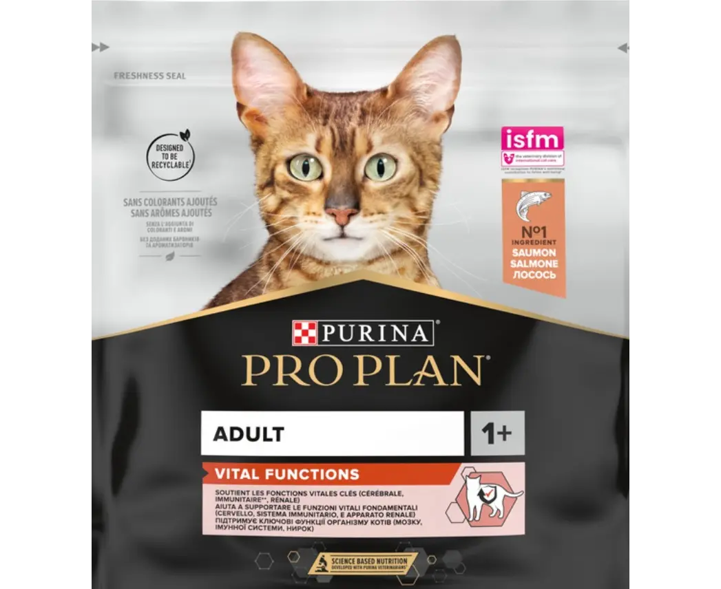 PRO PLAN® VITAL FUNCTIONS მშრალი საკვები ზრდასრული კატებისთვის, თირკმელების, ტვინის და იმუნური ფუნქციების შესანარჩუნებლად, ორაგულის მაღალი შემცველობით. შეიცავს მნიშვნელოვან კვებითი ნივთიერებების კომბინაციას, როგორიცაა არგინინი, ანტიოქსიდანტები და ომეგა-3 ცხიმოვანი მჟავები, რომლებიც მხარს უჭერენ ტვინის ფუნქციებს და მეხსიერებას.