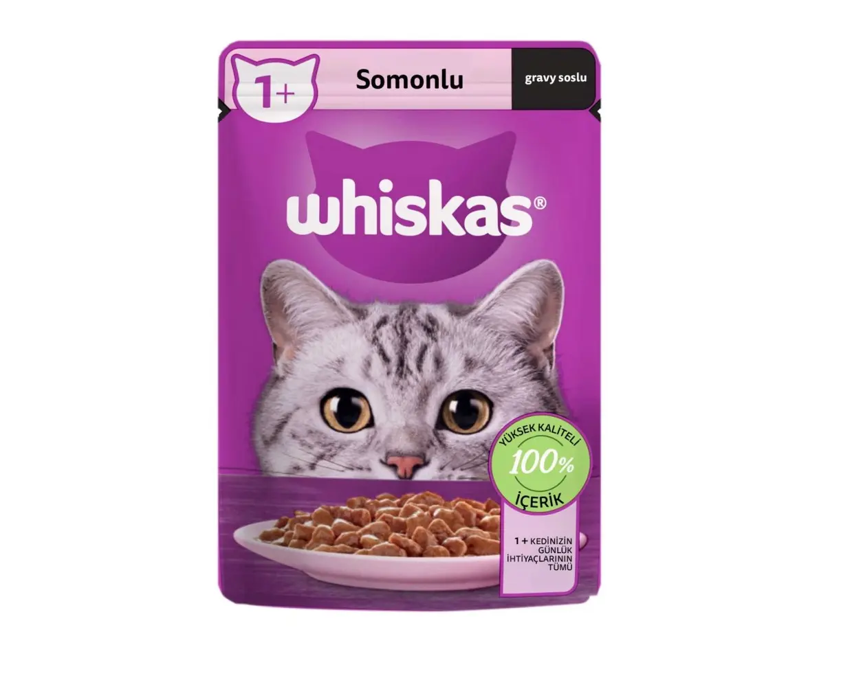 საკვები ჟელე კატის Whiskas ორაგული სოუსში 85გრ