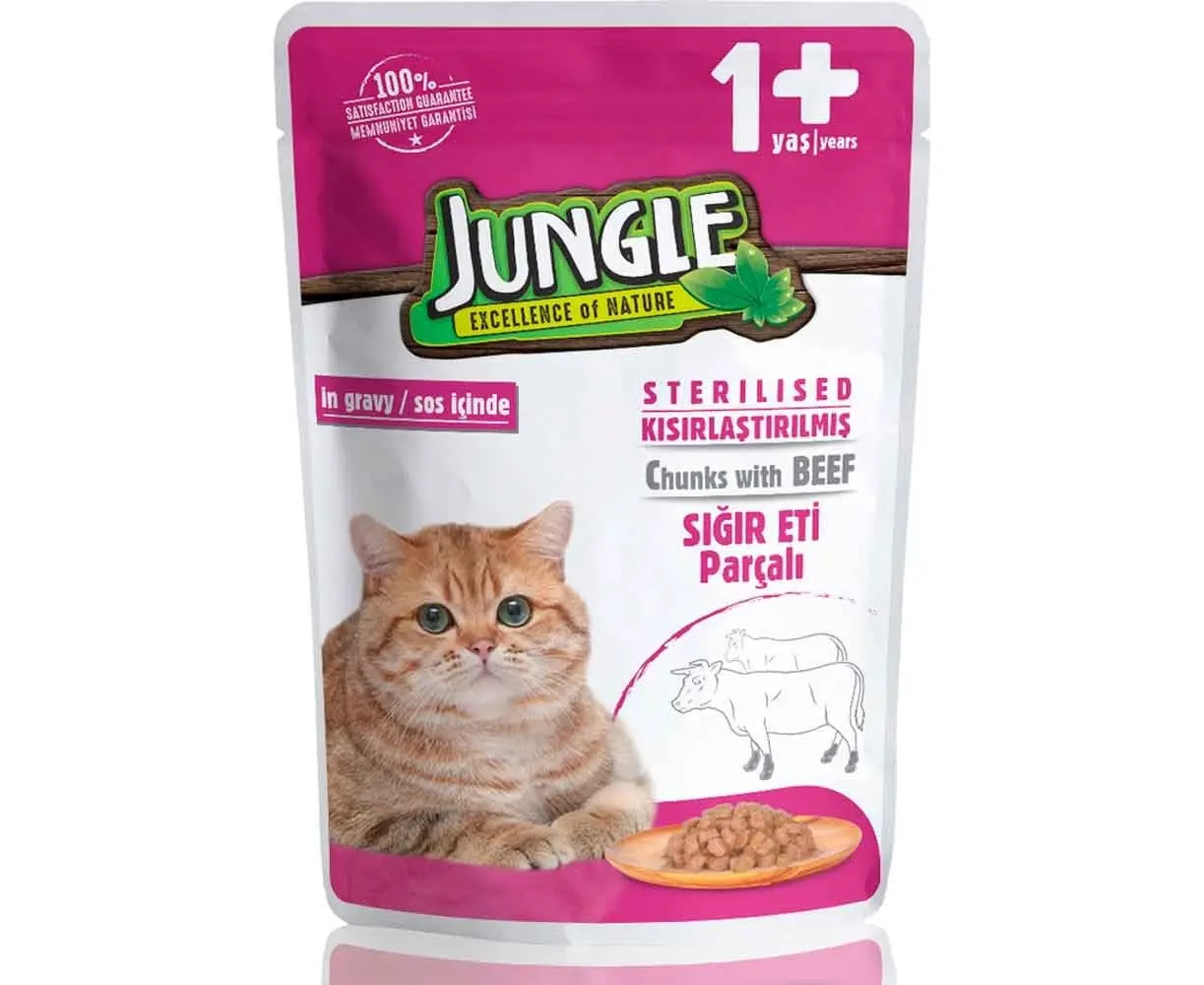 სველი საკვები სტერილური კატის Jungle საქონლის ხორცი 100გრ