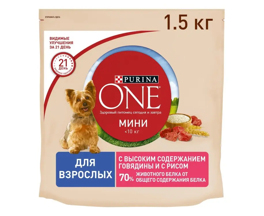 მცირე ჯიშის ძაღლებს აქვთ მაღალი მეტაბოლიზმი, ამიტომ ხშირად გრძნობენ შიმშილს. ძაღლის საკვებმა უნდა შეავსოს საკვები ნივთიერებების მარაგი, რათა თავიდან იქნეს აცილებული სისხლში გლუკოზის დონის ვარდნა ზედმეტი წონის მატების გარეშე - მდგომარეობა, რომლისკენაც მიდრეკილია პატარა ჯიშის ძაღლები. მაღალი ხარისხის მშრალი საკვების შემუშავებით, ექსპერტებმა შექმნეს სპეციალური დიეტა, რომელიც მორგებულია თქვენი შინაური ცხოველის საჭიროებებზე. Purina One მშრალი საკვები არის სრულფასოვანი რაციონის და შეიცავს ჯანმრთელობისთვის აუცილებელ მიკროელემენტებს. მაღალი ხარისხის ცილების და ნახშირწყლების დაბალანსებული კომბინაცია თქვენს შინაურ ცხოველს კუნთების სიძლიერესა და ენერგიას აძლევს. საჭმელი აერთიანებს პატარა ხრაშუნა კროკეტებს და უფრო რბილ ნაჭრებს, რაც ხდის მას ფრო გემრიელს და ეხმარება კბილის ქვის წინააღმდეგ ბრძოლაში. ომეგა 3 და ომეგა 6 აუცილებელი ცხიმოვანი მჟავები უნარჩუნებს ძაღლს ჯანსაღ კანს და ბეწვს. დიდი ძაღლების რაციონში ჩამატებულია ნატურალური უჯრედისი, რომელიც ეხმარება საჭმლის მონელებაში. არ შეიცავს საღებავებს, ხელოვნურ არომატიზატორებს და კონსერვანტებს.