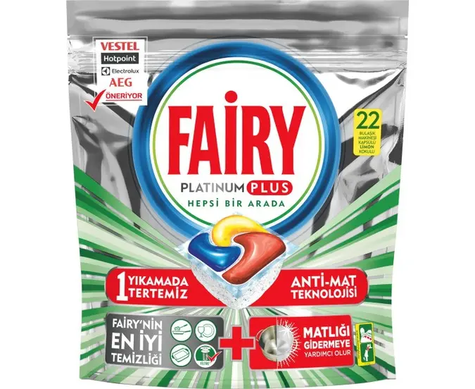 ტაბლეტები ჭურჭლის სარეცხი მანქანის FAIRY PLATINUM PLUS 22 ც