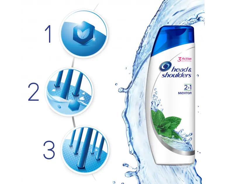 შამპუნი და ბალზამი-გამავლებელი 2 1-ში ქერტლის წინააღმდეგ Head&Shoulders მენთოლი 600 მლ
