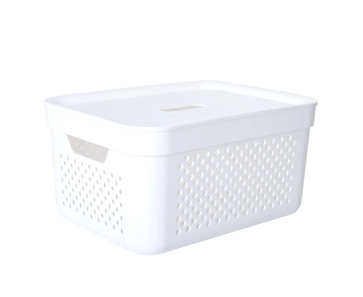 კომფორტული და პრაქტიკული Aleana Simple 15 კალათი იდეალურია ნივთების მოწესრიგებულად შესანახად სახლში, აბაზანაში, გარდერობში ან სამზარეულოში. დამზადებულია მტკიცე და მსუბუქი პოლიპროპილენისგან, რომელიც მდგრადია ტენიანობის მიმართ და მარტივად იწმინდება. კალათის პერფორირებული კედლები უზრუნველყოფს ჰაერის ცირკულაციას, რაც ხელს უშლის უსიამოვნო სუნის წარმოქმნას, ხოლო მჭიდროდ მორგებული სახურავი იცავს შიგთავსს მტვრის შეღწევისგან. მინიმალისტური ფერი და თანამედროვე დიზაინით ის შესანიშნავად მოერგება ნებისმიერ ინტერიერს.