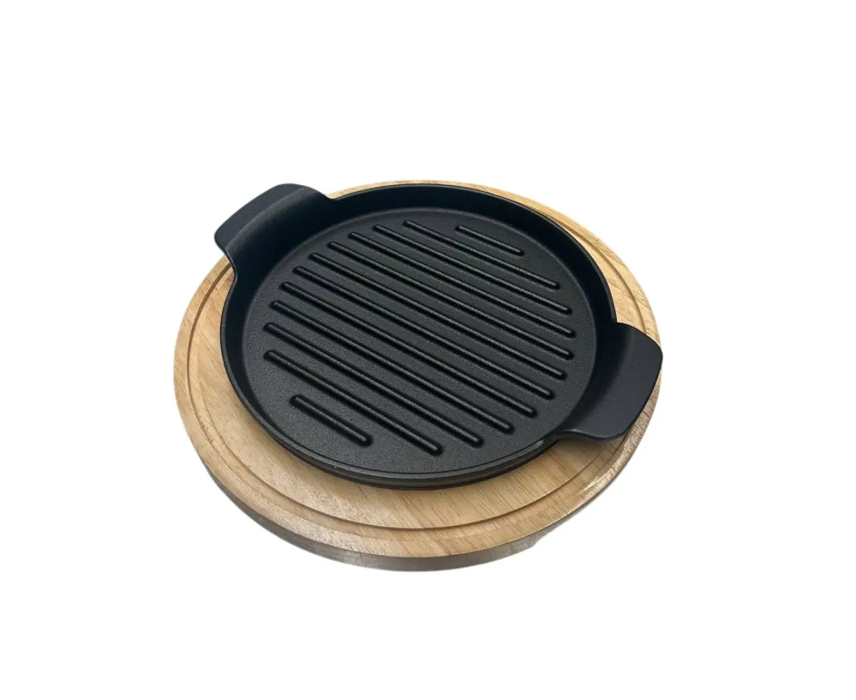 ეს კეცი დამზადებულია თუჯისგან და იდეალურია ხორცის, ბოსტნეულისა და სხვა პროდუქტების შესაწვავად. მას აქვს თავისივე ხის სადგამი, რაც უსაფრთხო და პრაქტიკულ გამოყენებას უზრუნველყოფს როგორც სამზარეულოში, ისე მაგიდაზე და სუფრაზე გადმოსატანად. სტრუქტურული ზედაპირი ხელს უწყობს პროდუქტების თანაბარ შეწვას.