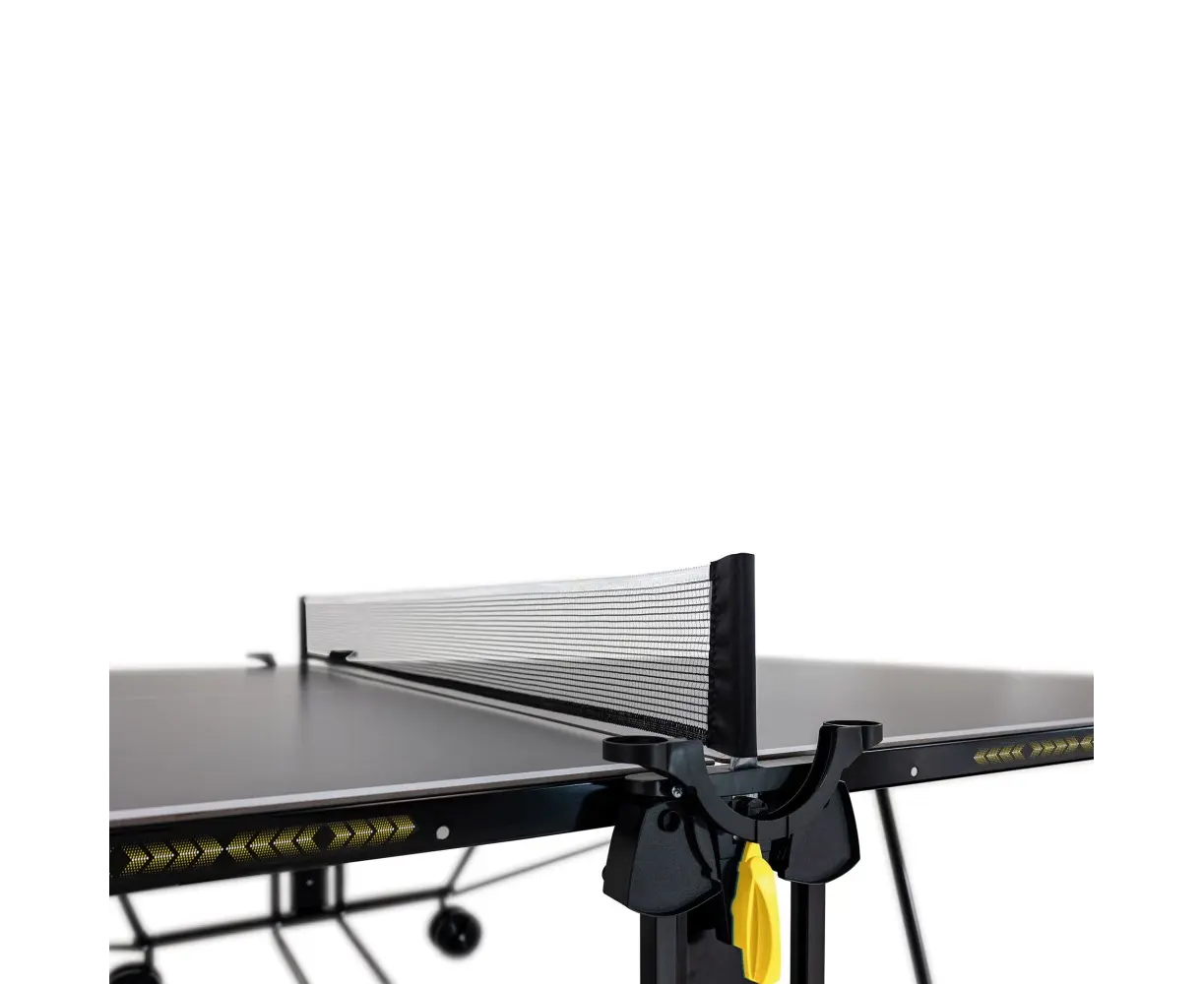 Donic Indoor grau 600 არის მაღალი ხარისხის დასაკეცი ჩოგბურთის მაგიდა, რომელიც განკუთვნილია შიდა გამოყენებისთვის. იგი აღჭურვილია ჩოგნებისა და ბურთების შესანახი თაროებით, რაც დამატებით კომფორტს უზრუნველყოფს თამაშის დროს. სპეციალური დასაკეცი მექანიზმი საშუალებას გაძლევთ მაგიდა მარტივად და სწრაფად მოამზადოთ სათამაშოდ ან შეინახოთ კომპაქტურად. გადაადგილება მაქსიმალურად გამარტივებულია – მაგიდა აღჭურვილია 4 დიდი ბორბლით (დიამეტრი 125 მმ), რომლებიც რეზინის საფარით გამოირჩევა, რაც უზრუნველყოფს სტაბილურობასა და მანევრირებას თუნდაც არათანაბარ ზედაპირებზე.
