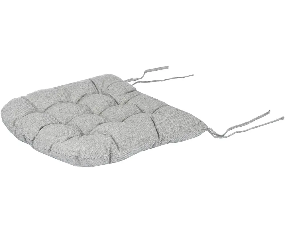 კომფორტული და ესთეტური აქსესუარი, რომელიც ამაღლებს ჯდომის კომფორტს და ამავდროულად ამშვენებს ინტერიერს. დამზადებულია მაღალი ხარისხის მასალებისგან – ბამბის, ჰოლოფიბერისა და პოლიპროპილენის შერწყმით, რაც უზრუნველყოფს გამძლეობასა და ფორმის შენარჩუნებას ხანგრძლივი გამოყენებისას. ნაცრისფერი ფერი და მარტივი კვადრატული ფორმა შესაფერისია როგორც სამზარეულოს, ისე ოფისისა თუ ტერასის სკამებისთვის.
